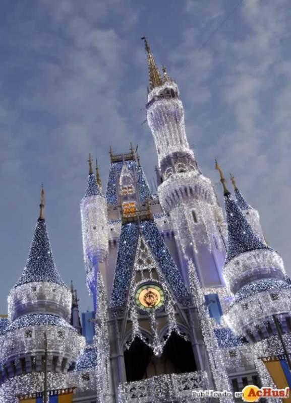 | El castillo de Cenicienta se adorna durante las fiestas navideñas. |