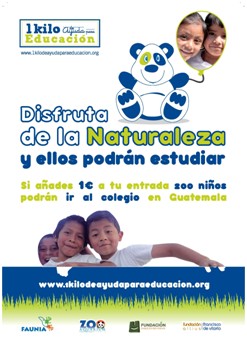 | El Zoo de Madrid y 1 Kilo de Ayuda para Educación, apoyando la escolarización de niños de Guatemala. |