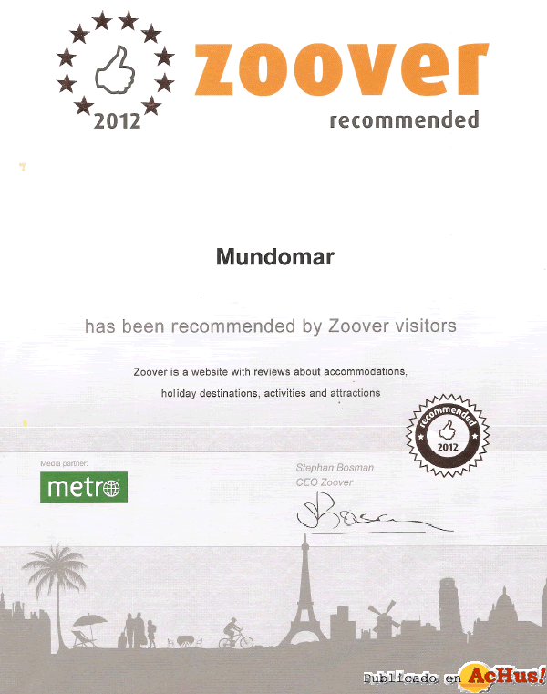 | Mundomar obtiene el certificado de Destino Recomendado 2012 en Europa por Zoover. |